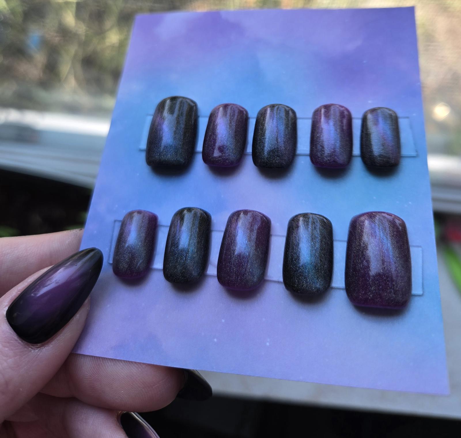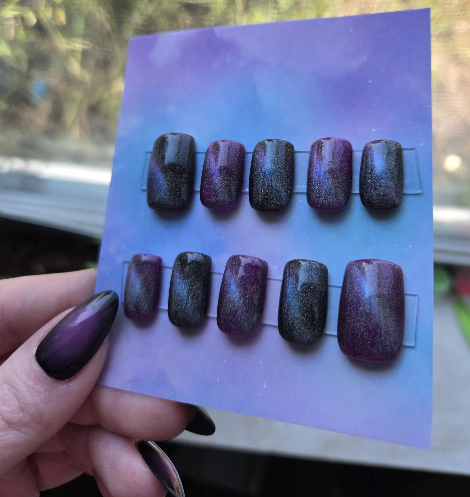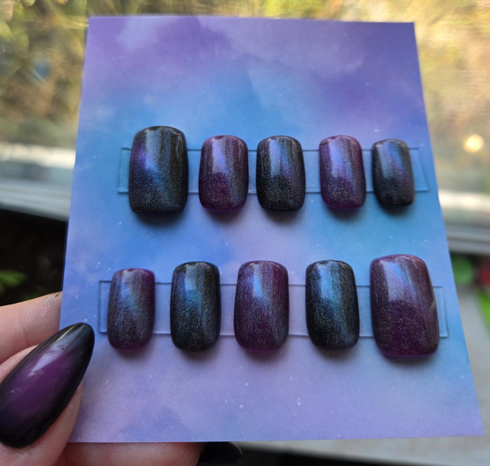 Galaxy cats eye short square press on nails custom made