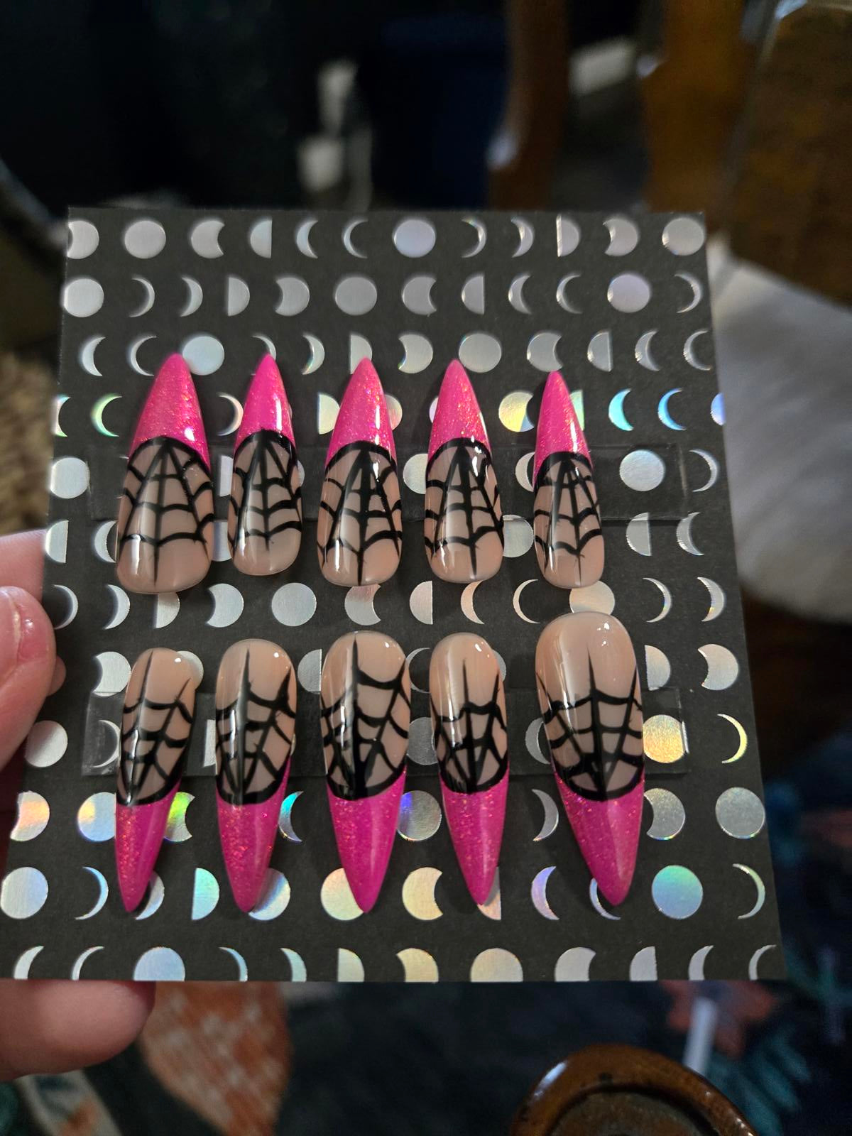 Spiderweb hot pink french tip stiletto press on nails custom made